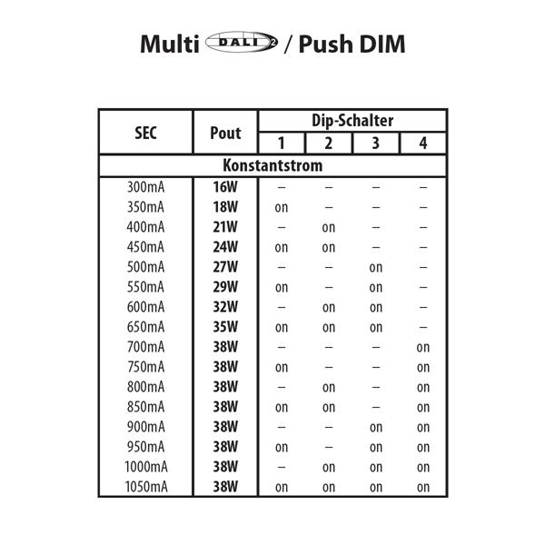 Konstantstrom einstellbar mittels DIP-Schalter:
