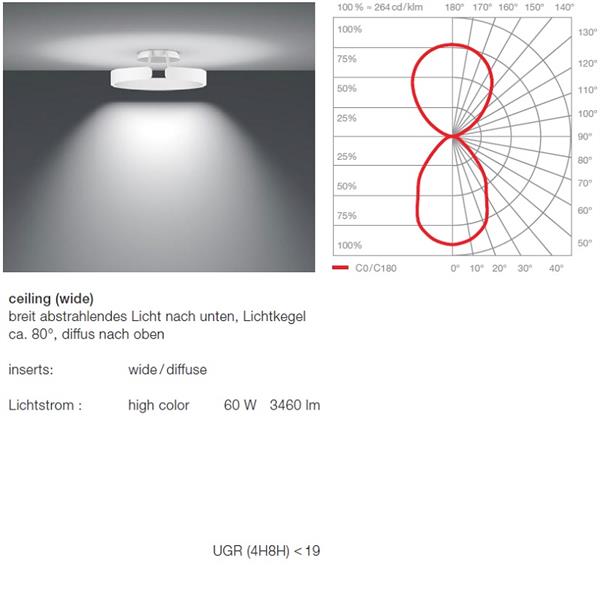 Lichtwirkung table (wide) breit abstrahlendes Licht nach unten, Lichtkegel