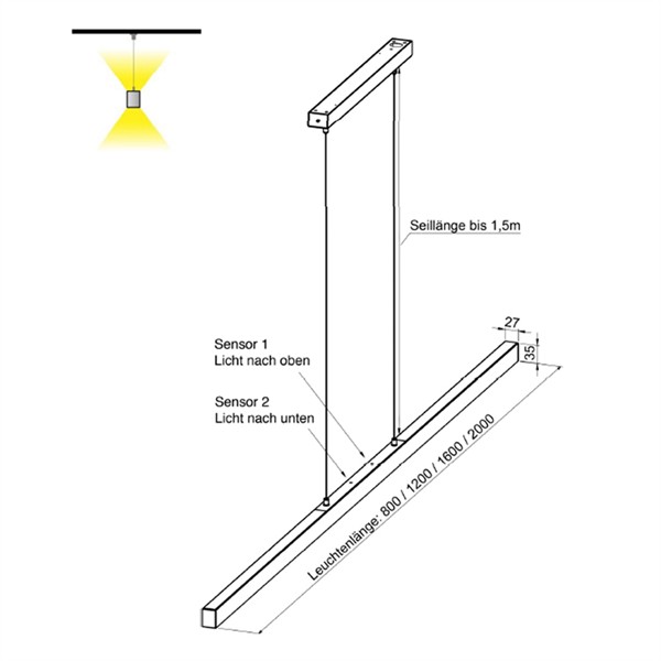 Abhängehöhe max,1500mm / Direkt 32W - Indirekt 16W