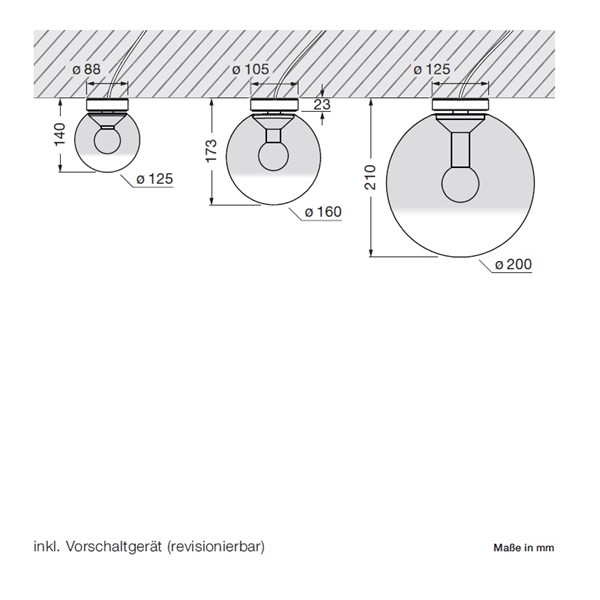 Base D=88mm T=140mm / Leuchtenkopf D=125mm