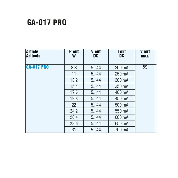 350mA =15.4W / 500mA = 22W / 700mA =31W