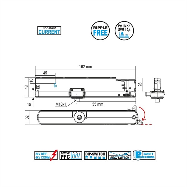 350mA =15.4W / 500mA = 22W / 700mA =31W